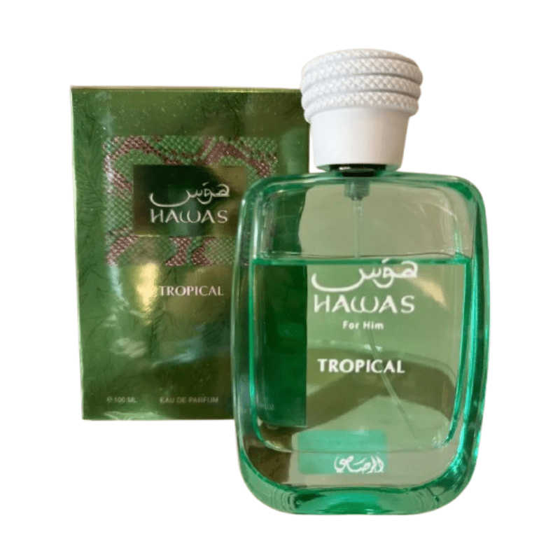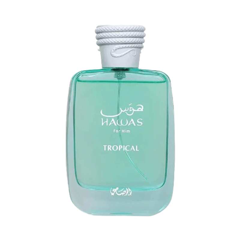 Hawas for Him Tropical by Rasasi is an Eau de Parfum for men introduced in 2025 as part of the Hawas collection. This fragrance is characterized by a sparkling and radiant composition, inspired by the idea of a tropical escape. The scent opens with invigorating notes of fig leaf, coconut water, and ginger, leading to a heart of coconut, fig, and mint. The base is composed of tonka bean, musk, and sandalwood, providing depth and a smooth finish. Hawas Tropical is described as aromatic, green, and woody, making it suitable for daytime wear.